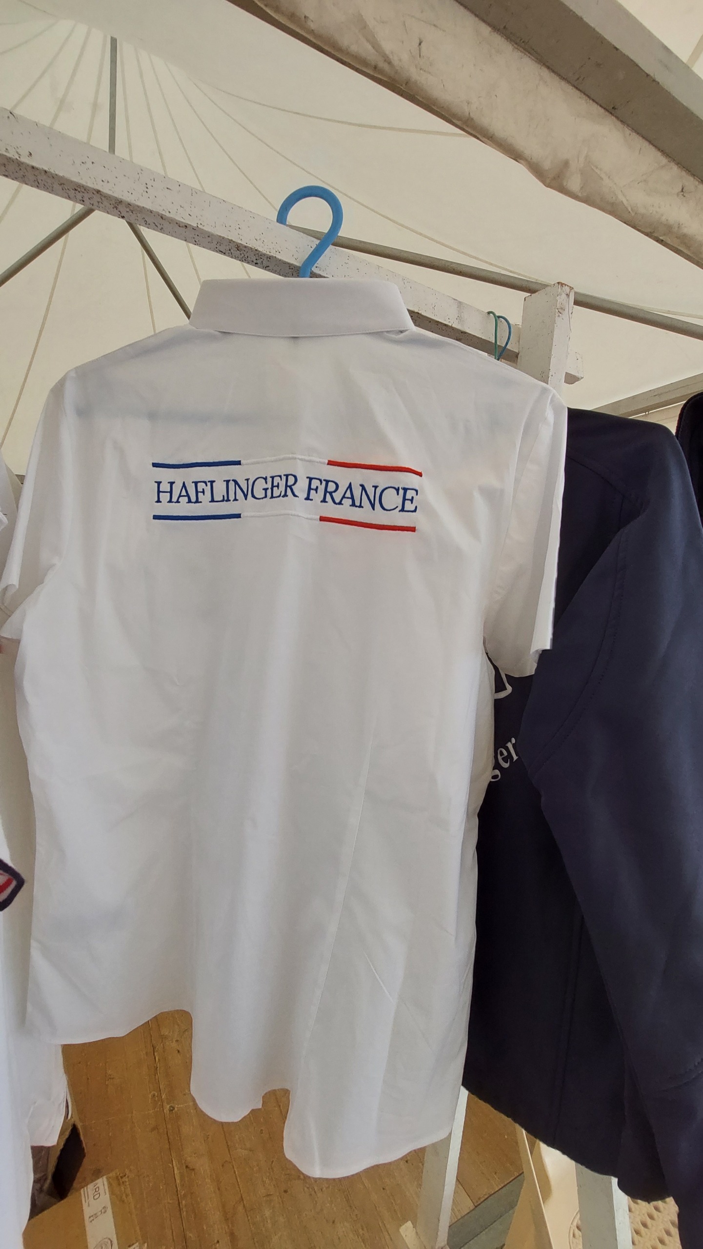 La chemise blanche à manches courtes, logo AFH devant, inscription HAFLINGER FRANCE au dos. Broderie. Homme ou femme, taille S à XXL.