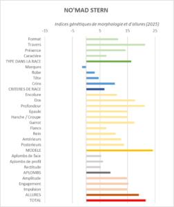 Fils de Liz STERNWACHTER et Ghala Cara (UILHOU WINZ), né le 4 mai 2023. Toise 151cm. Origines de qualité aussi bien paternelles que maternelles: sa mère est Elite, plusieurs fois championne de France et ses produits sont tous confirmés à plus de 35 points ! Il est confirmé dans la race avec 36,68 points au modèle et allures. Il a été jugé de « poulain moderne avec une belle robe, bien relié dans sa ligne du dessus, de bons membres surtout ses antérieurs. Pêche dans sa tête et le dessous de son encolure. Ses déplacements sont bons ». C’est un cheval gentil, bien dans sa tête et calme. Il est facile à gérer au quotidien, vit en pâture en troupeau mais également en box ou stabulation. Il est débourré monté et attelé.